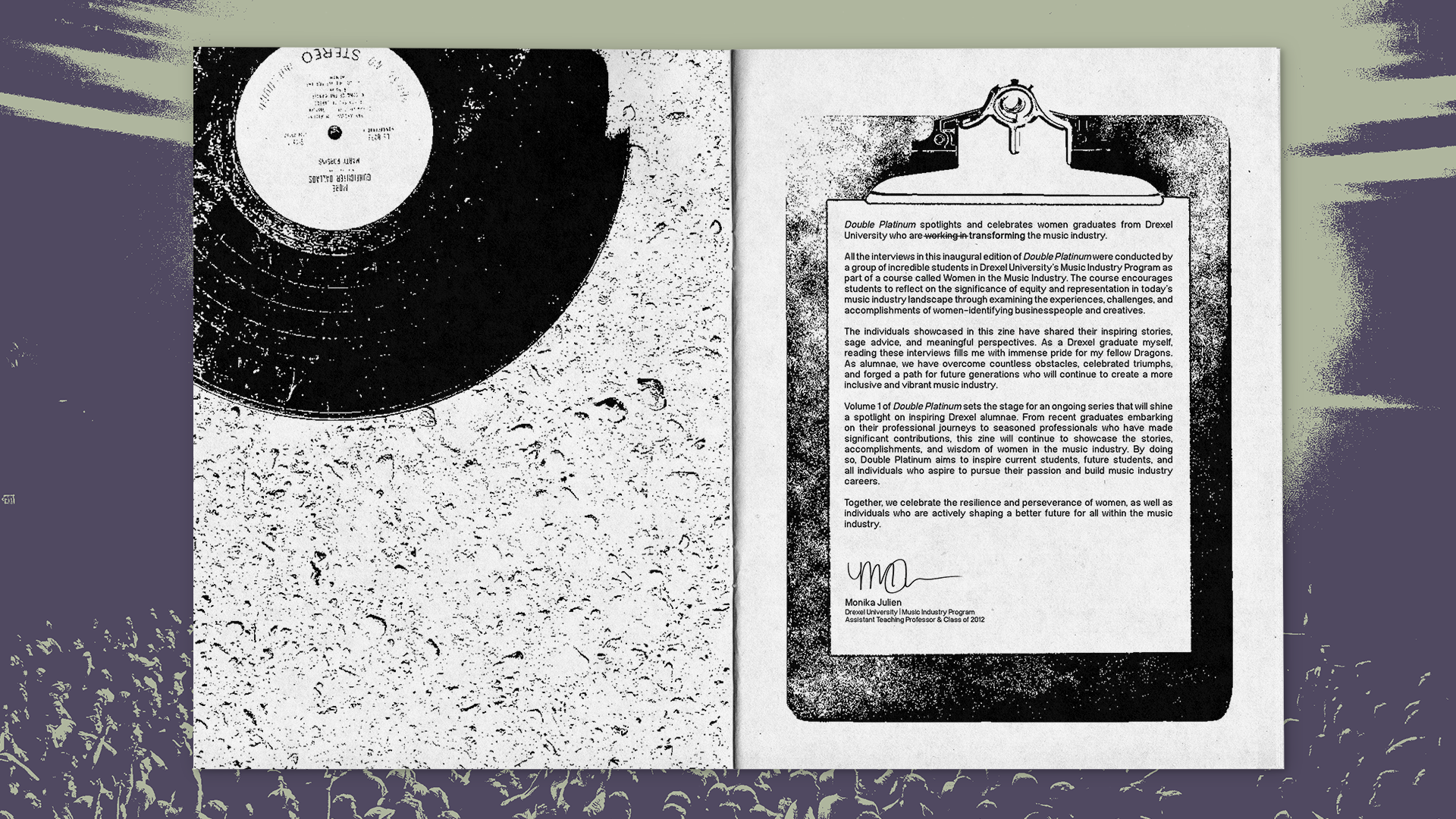Double Platinum Volume 1, a zine created for the Women in the Music Industry course at Drexel University. View the full zine here.